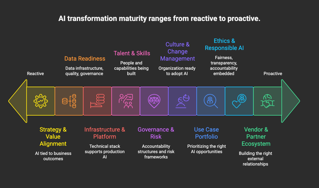 - Data Readiness — Do you have the data infrastructure, quality, and governance to fuel AI at scale?